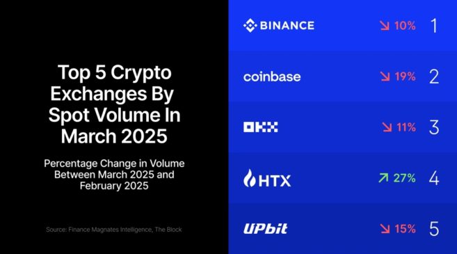 also represented a 12% growth compared to March 2024, allowing Huobi to climb