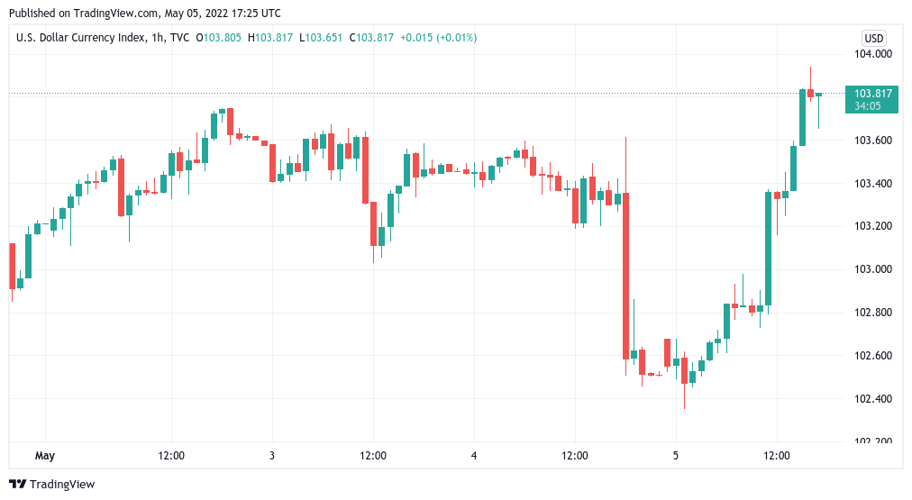 DXY stood at near 104 at the time of writing, up 1.2% on the day.