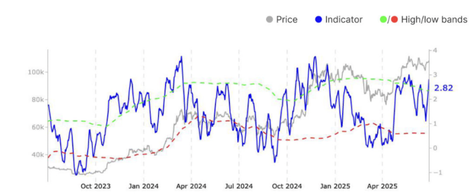 Profitability data reflects these bullish albeit cautious market conditions. For instance, Bitcoin’s realized profit/loss ratio has jumped to 2.8 from 1.1 since June 22, exceeding the high band threshold of 2.4, a 156.4% rise.