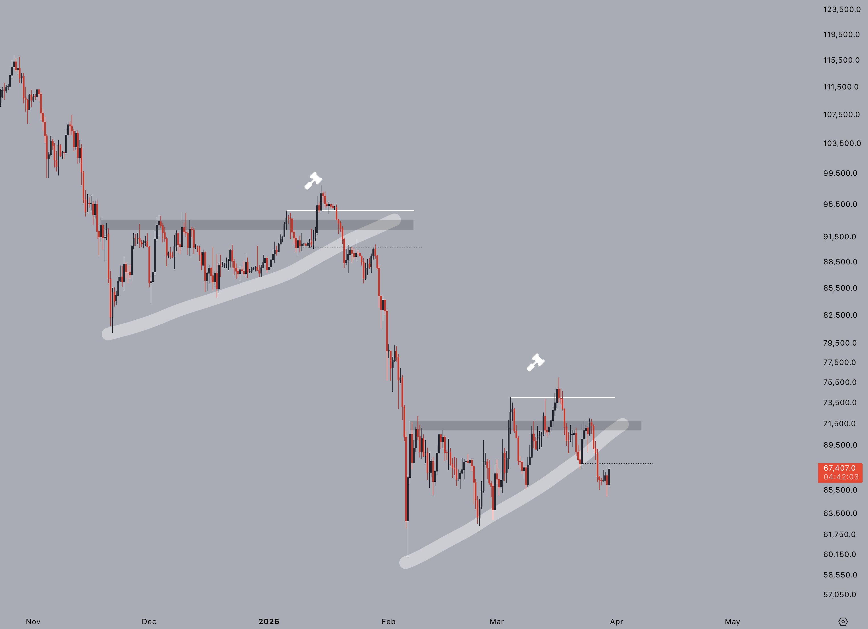 “Although the price continues to oscillate around $67K, the data suggests the market is entering another phase of hand-overs (re-distribution).”