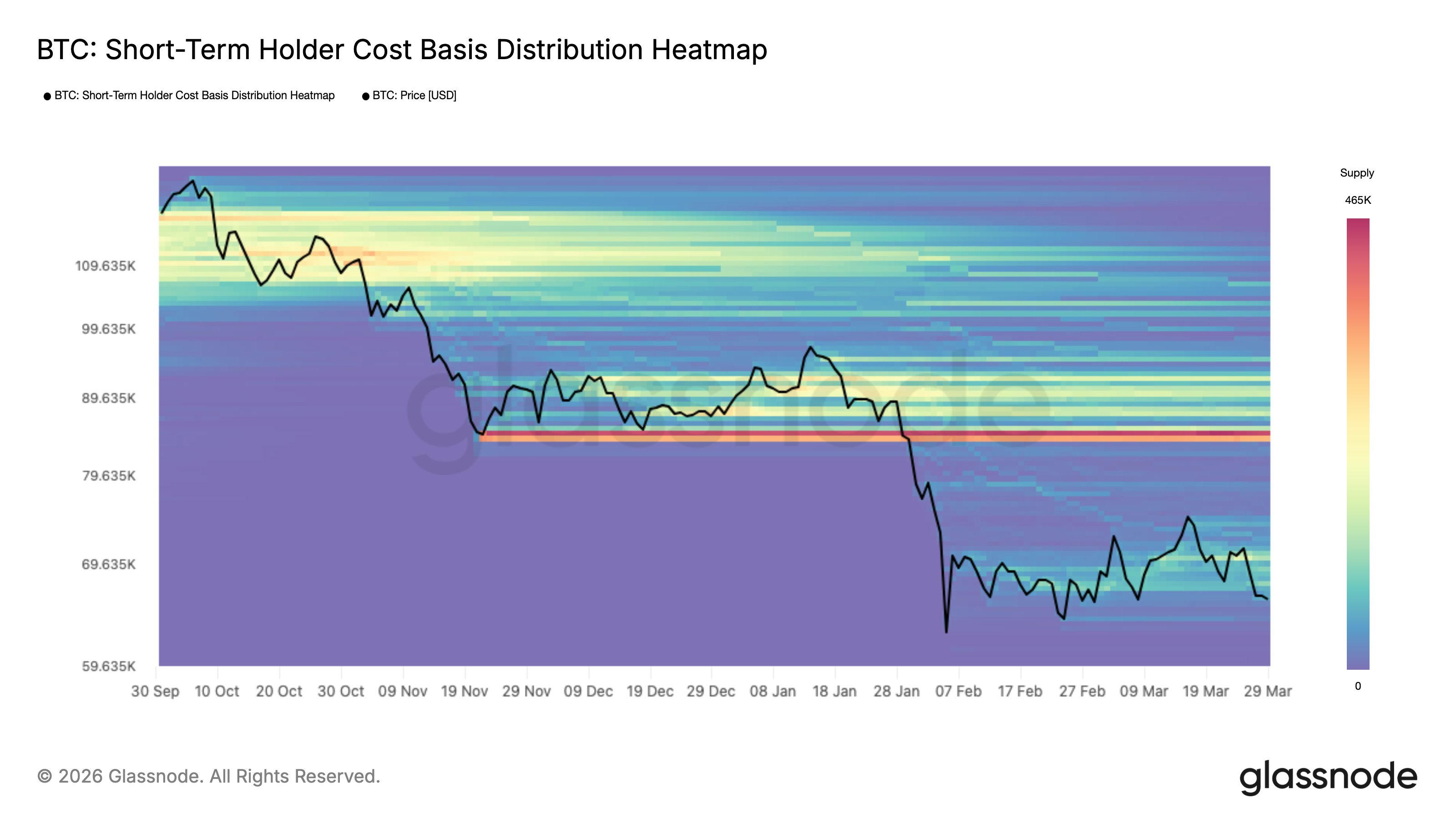 “Supply accumulation in this range is notable, but the cluster is thinner than historical analogs that preceded a strong recovery.”