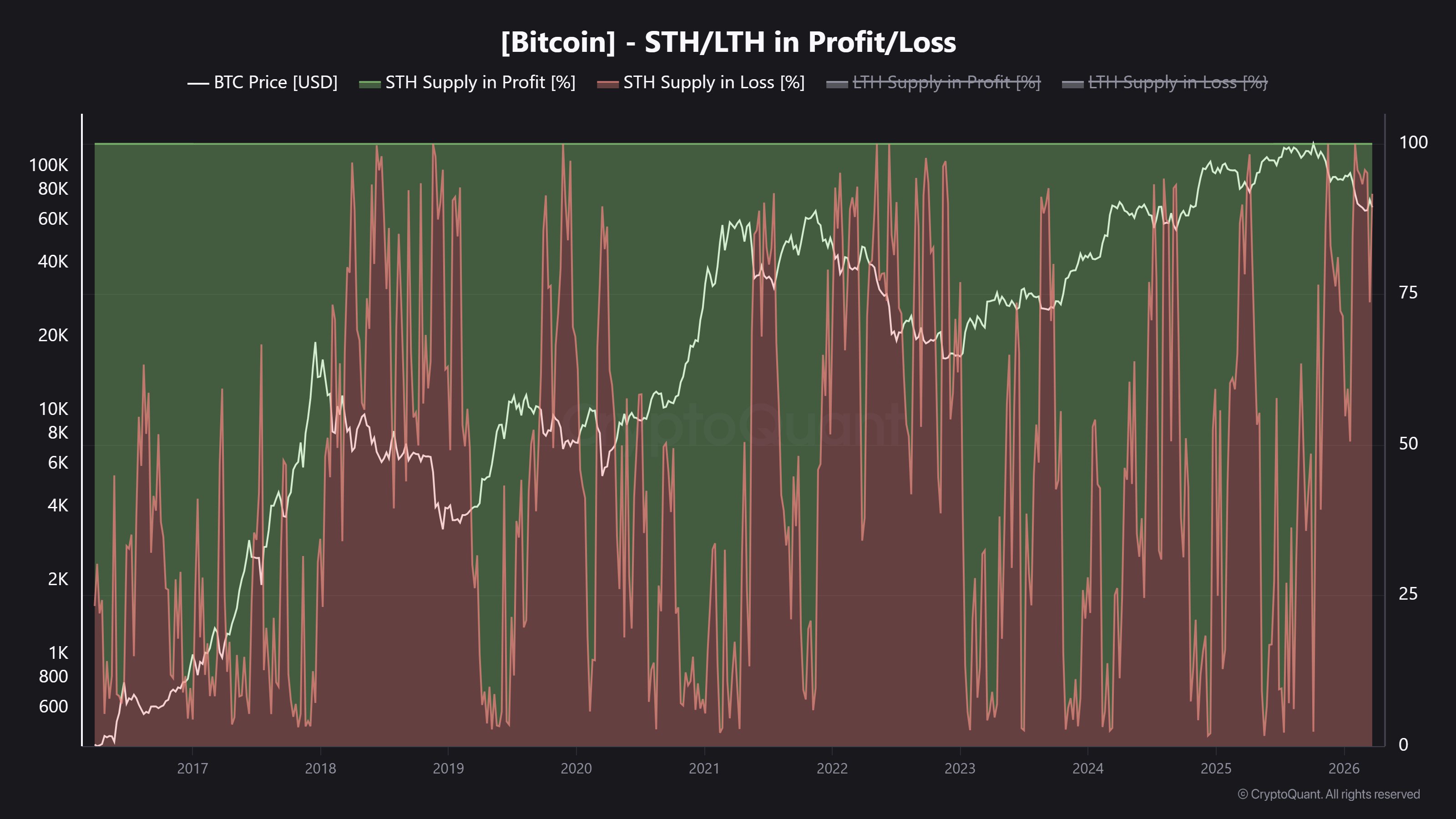 Last week, CryptoQuant calculated STH share of the overall supply at 5.7 million BTC, with 92% sitting on losses.