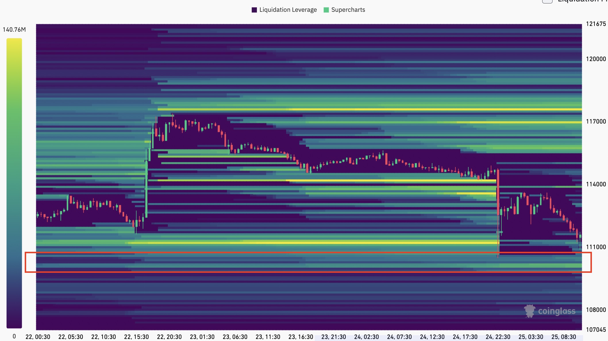 Bitcoin (BTC) sellers emerged again on Monday as the drop to $111,000 resulted in a large liquidation of leveraged long positions across the cryptocurrency market.