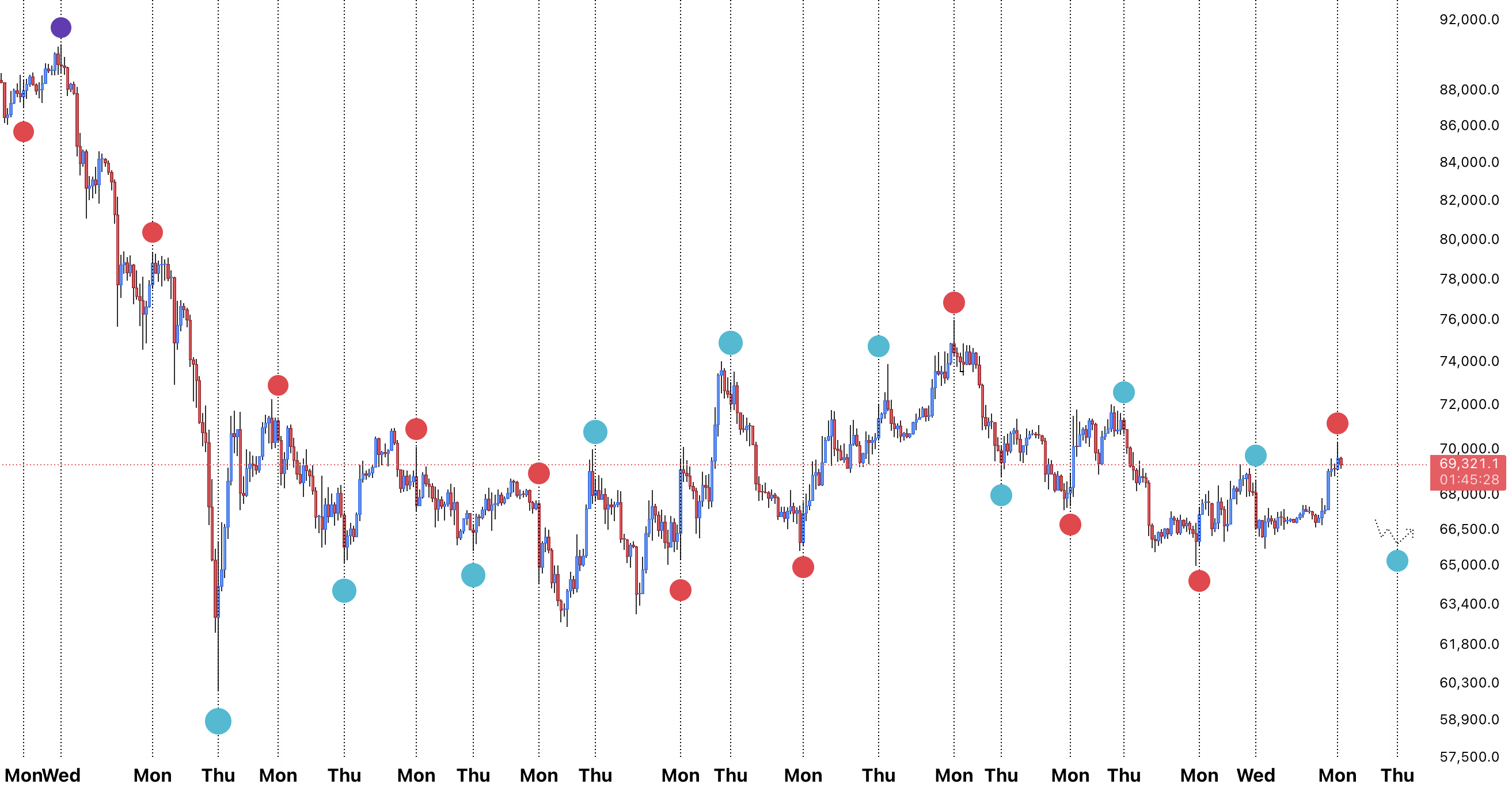 “Volatility picking up, and I think it’s fireworks during this week as we might be getting to the end stage of the entire situation in the Strait of Hormuz. If Bitcoin breaks $71K, then markets are in for a test at $80K.”