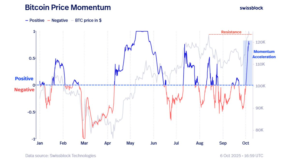 Private wealth manager Swissblock stated that Bitcoin’s upward momentum remains strong, despite the slight correction from record highs.