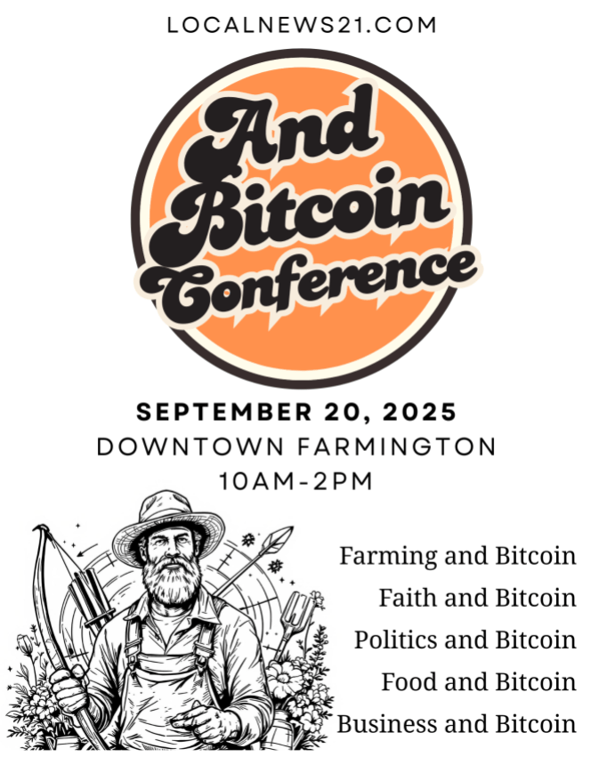 Join Texas Slim & other bitcoiners in Downtown Farmington at 11 N. Jefferson Street, 63640.