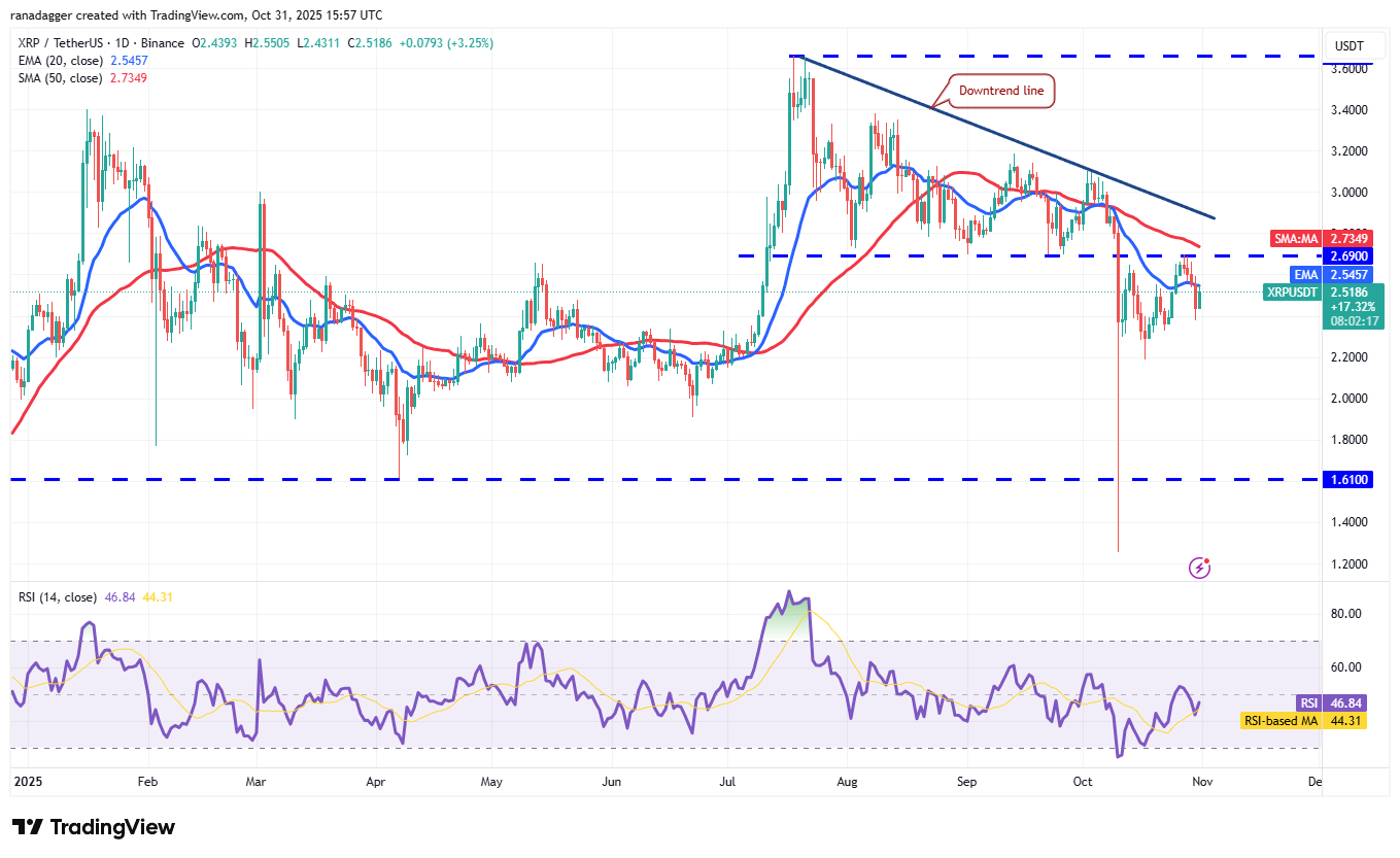XRP (XRP) fell below the 20-day EMA ($2.54) on Thursday, signaling that bears are trying to retain the advantage.