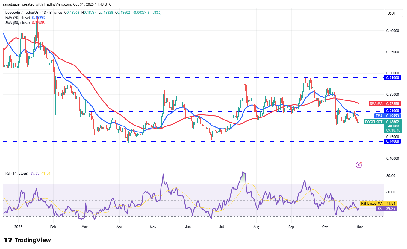 Buyers are attempting to maintain Dogecoin (DOGE) above the $0.17 support, but the shallow bounce suggests that the bears continue to exert pressure.
