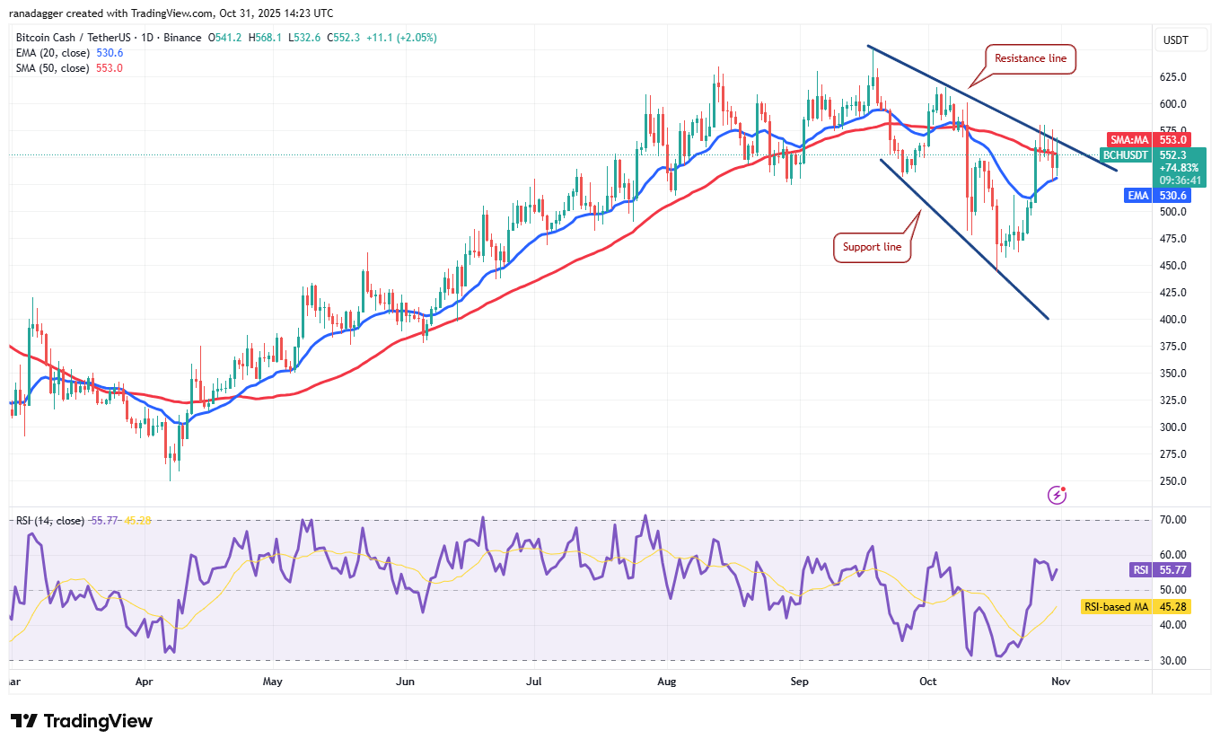 Bitcoin Cash (BCH) has been stuck between the 20-day EMA ($530) and the resistance line for the past few days.