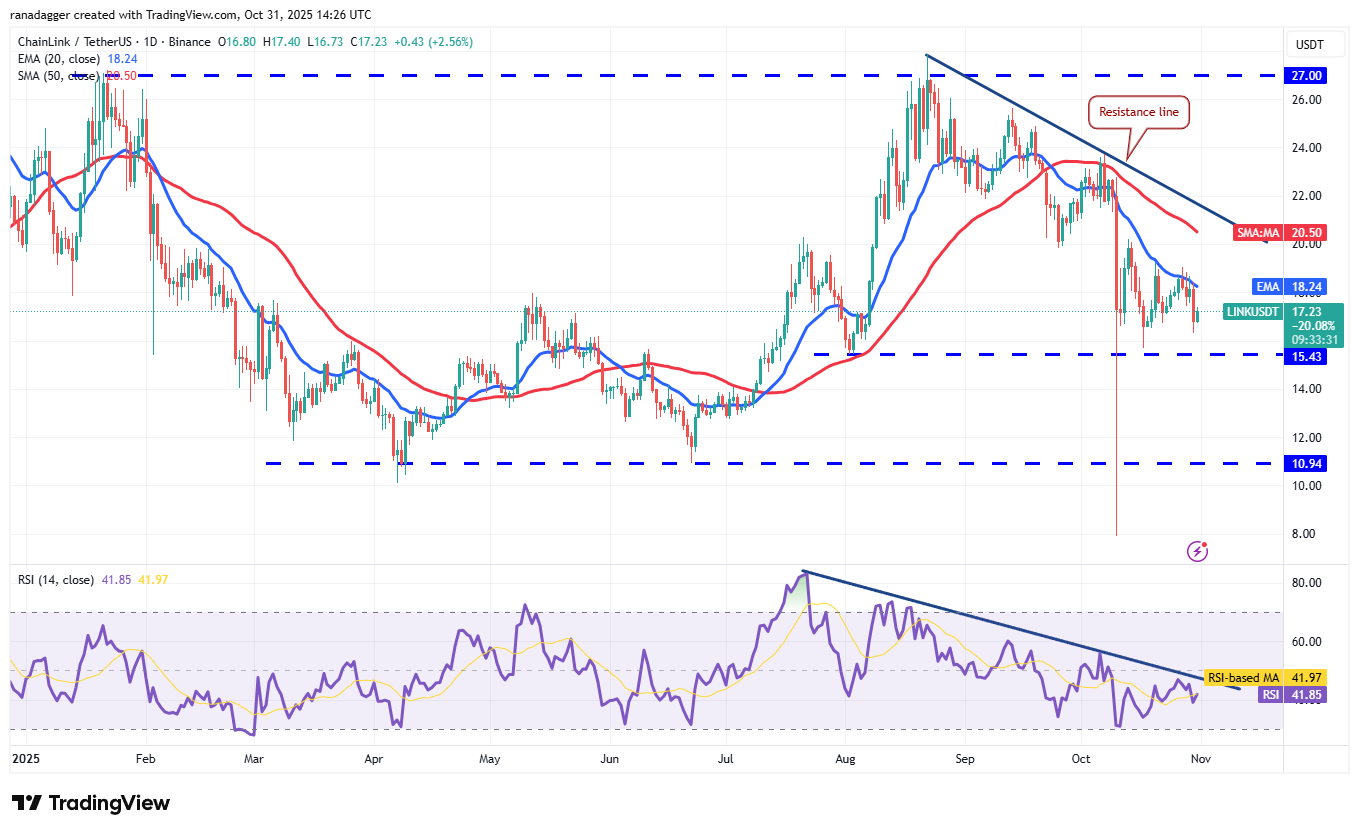 Buyers tried to push Chainlink (LINK) above the 20-day EMA ($18.24) on Wednesday, but the bears held their ground.