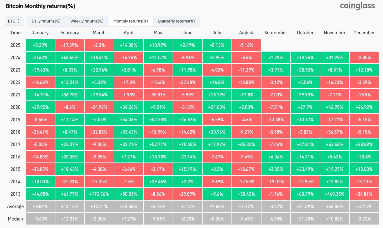 September is traditionally Bitcoinโs weakest month, with markets also wary of US inflation markers.ย
