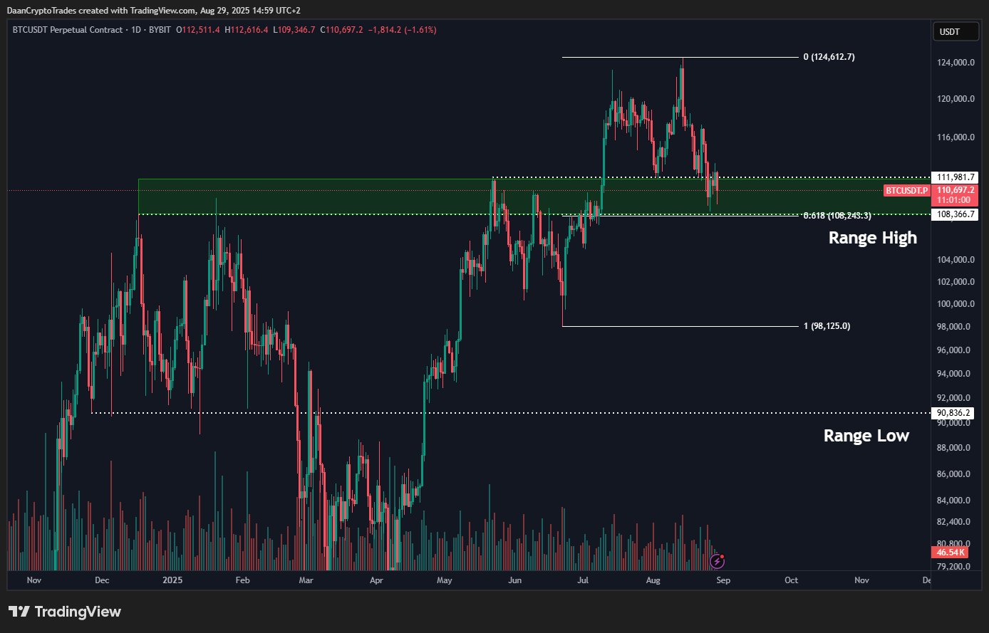 โGood area to keep watching. Right on top of the previous range & consolidation area,โ popular trader Daan Crypto Trades noted in a post on X.