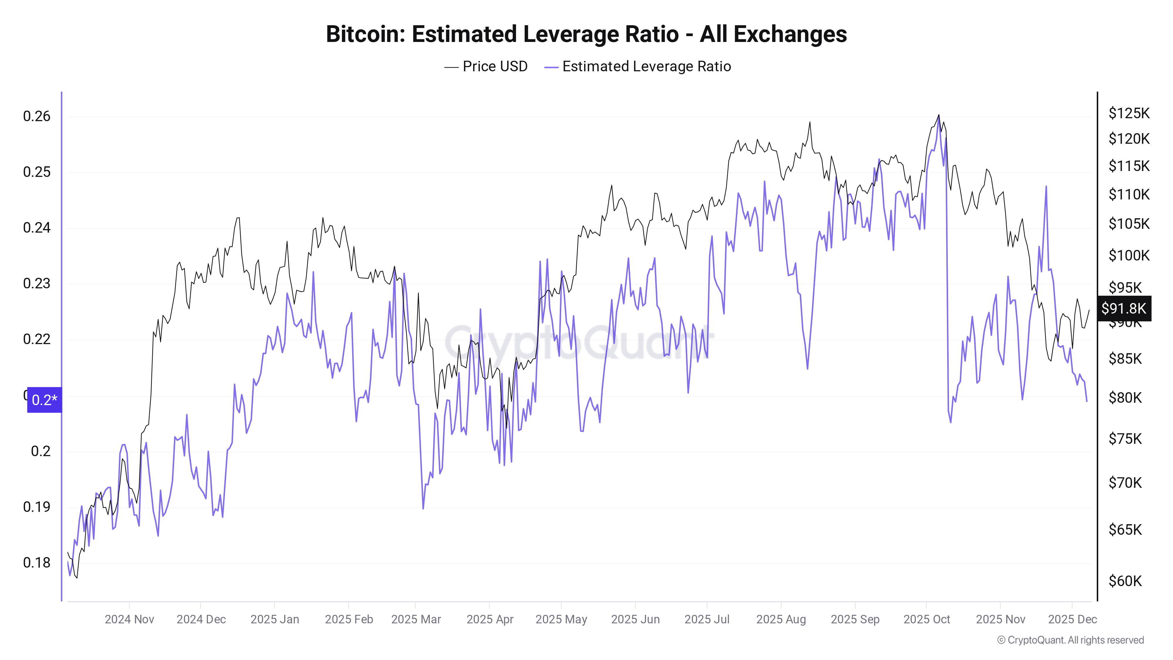 CryptoQuant’s estimated leverage ratio metric, which divides OI by BTC reserves, has declined significantly since mid-November.