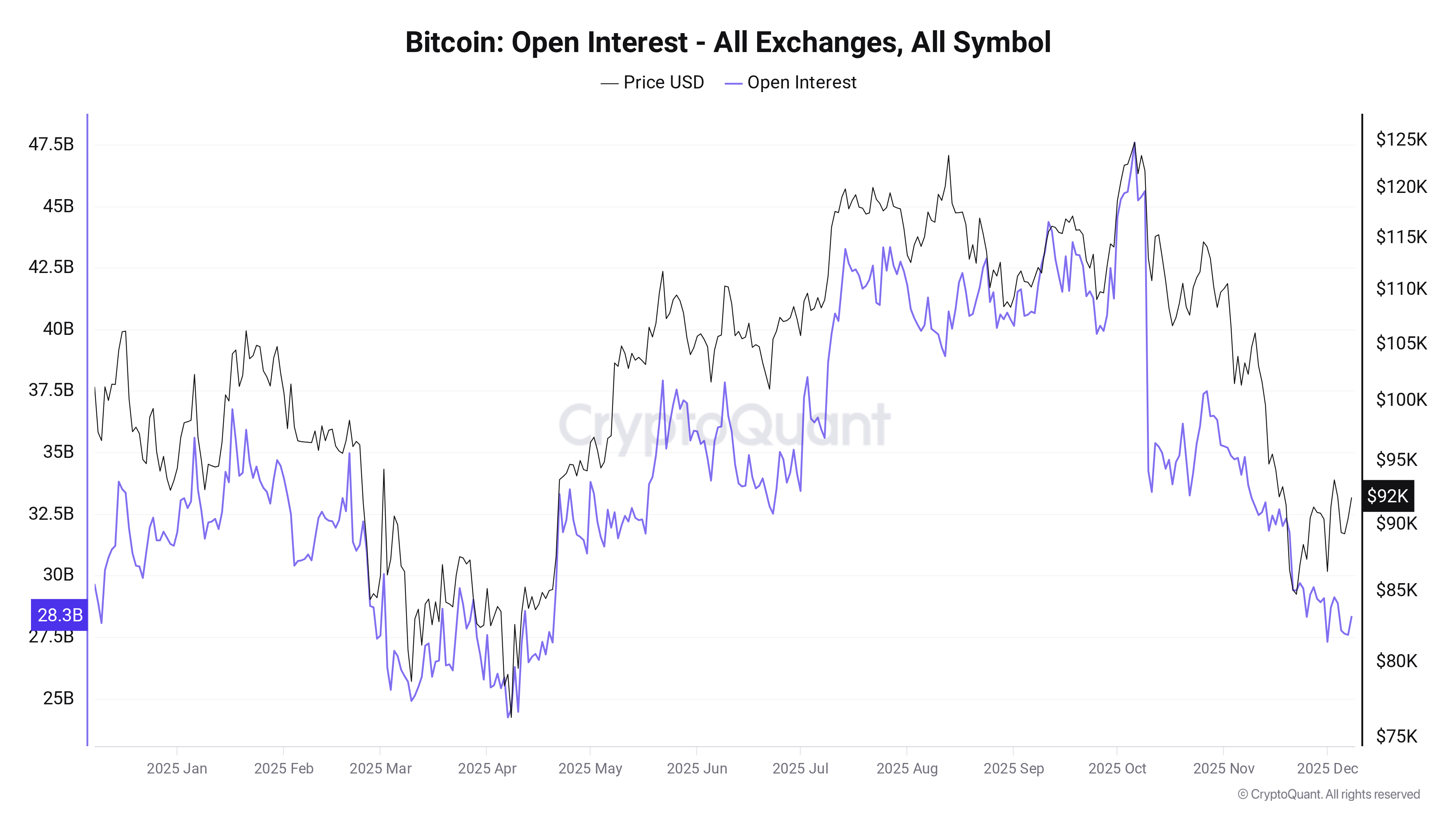 New data from onchain analytics platform CryptoQuant confirms that open interest (OI) across Bitcoin exchanges has dropped to its lowest levels since April, when BTC/USD traded at $75,000.