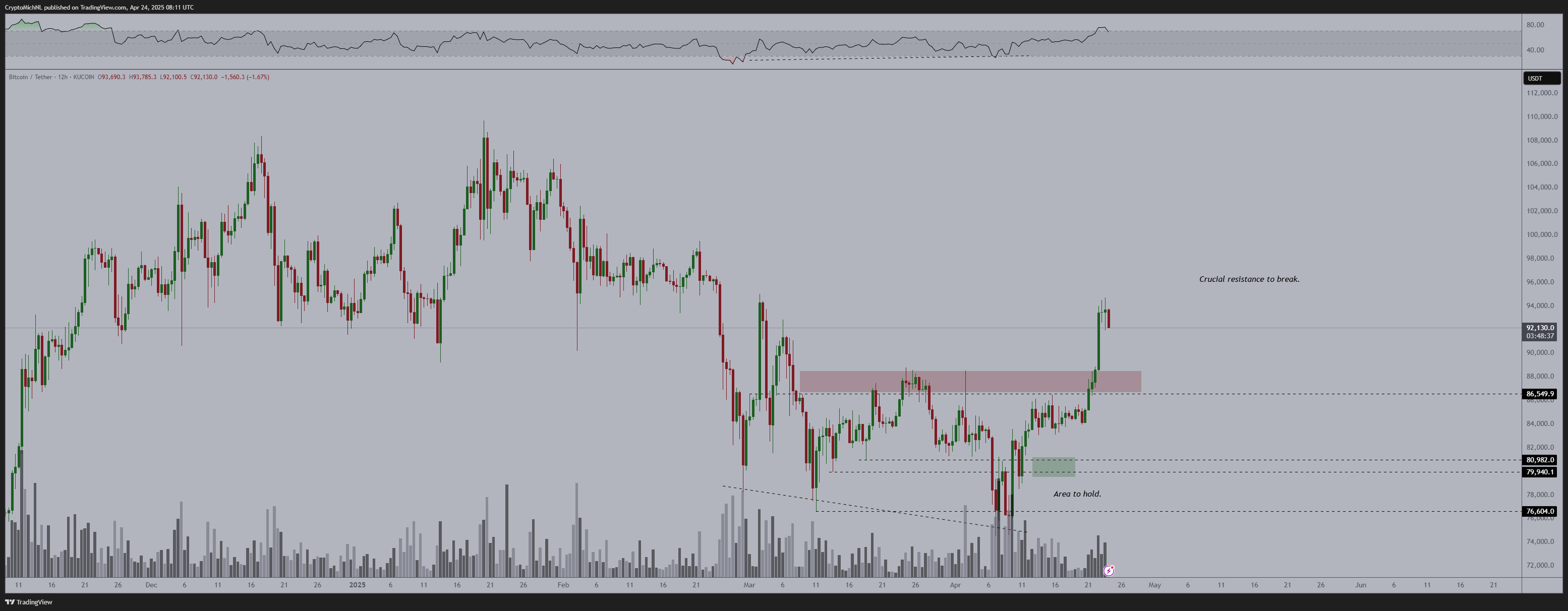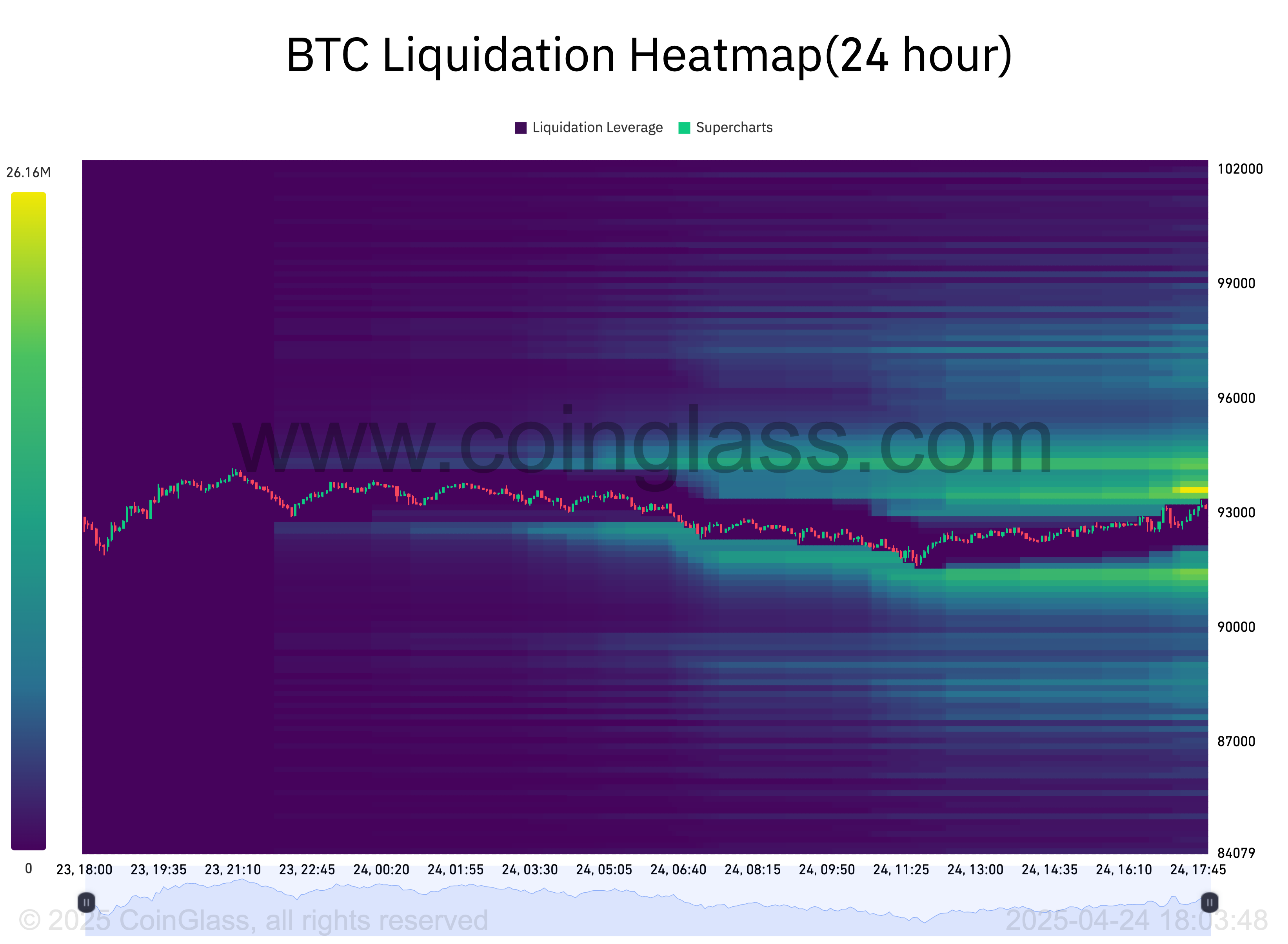 Leveraged shorts around $93,500-$94,500. pic.twitter.com/d2jCyO2FdC— chad. (@chad_ventures) April 24, 2025