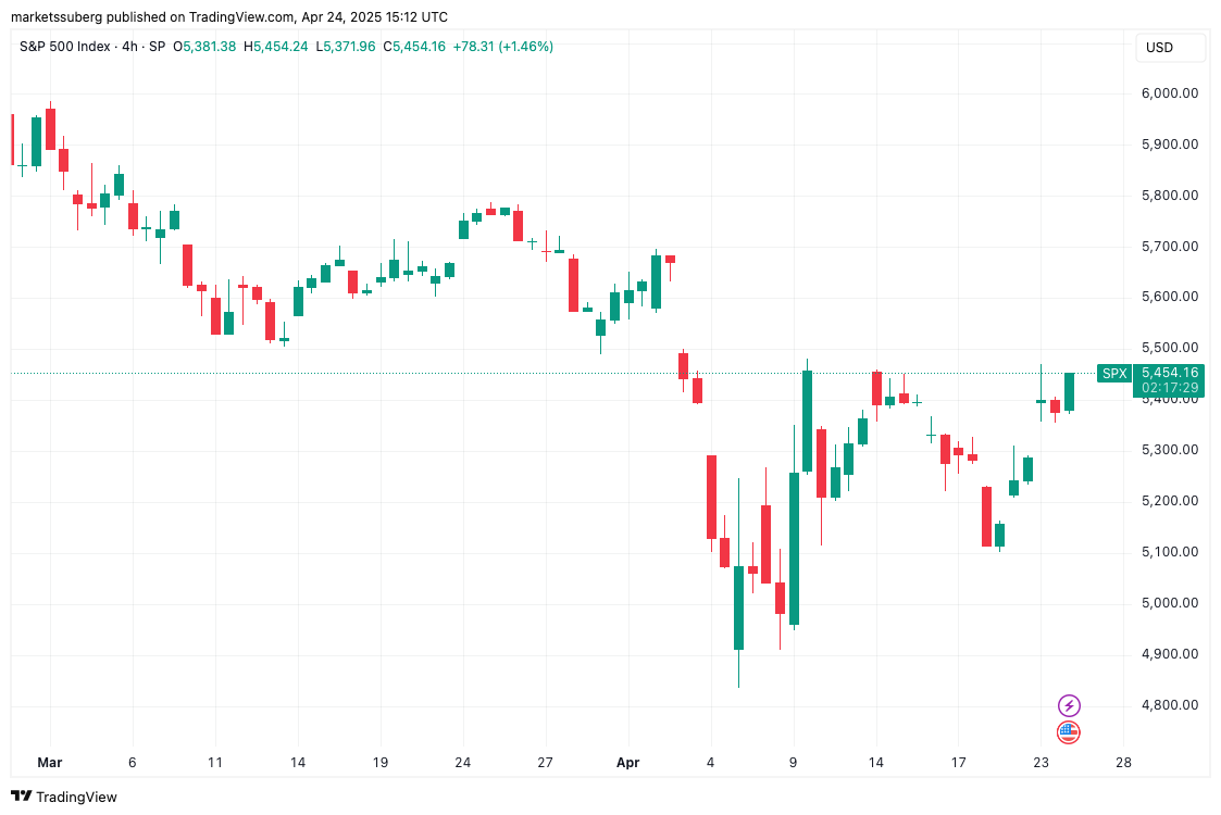 “The market is now up over +1% on the day on no news at all,” trading resource The Kobeissi Letter summarized alongside a chart of the S&P 500 in part of its latest analysis on X.
