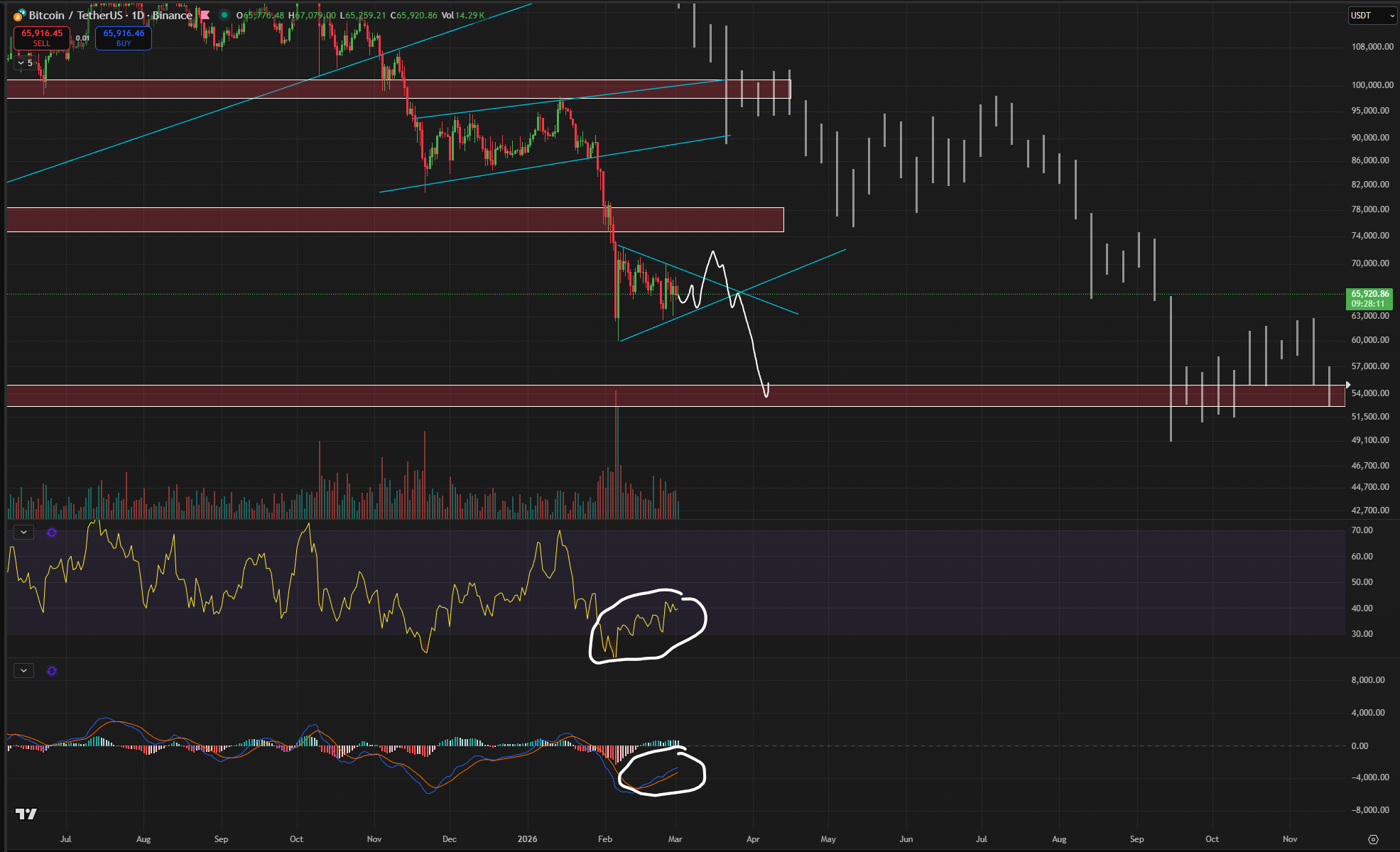 Roman uploaded a chart showing both relative strength index (RSI) and moving average convergence/divergence (MACD) indicator data diverging from the price.