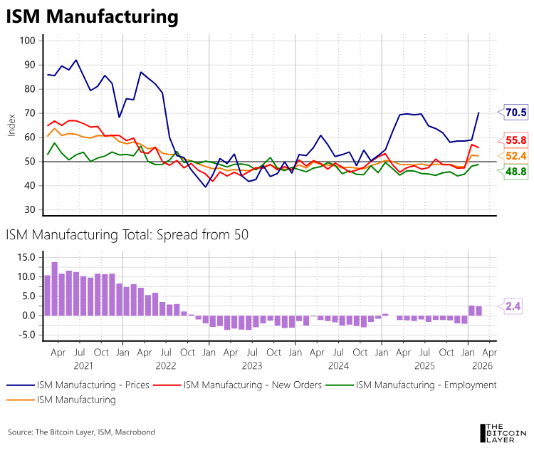 โBitcoin trading well on strong US manufacturing this morning and elevated prices paid,โ Nik Bhatia, founder of global macro research company The Bitcoin Layer, commented.ย
