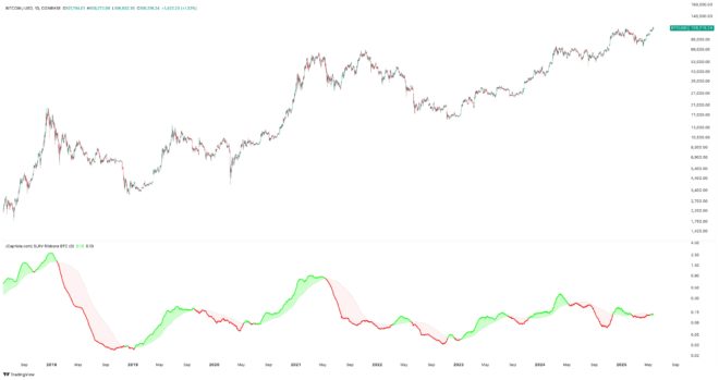 On-chain data shows the Bitcoin ‘SLRV’ Ribbons have recently once again been giving a green signal. Here’s what this could mean for the asset.