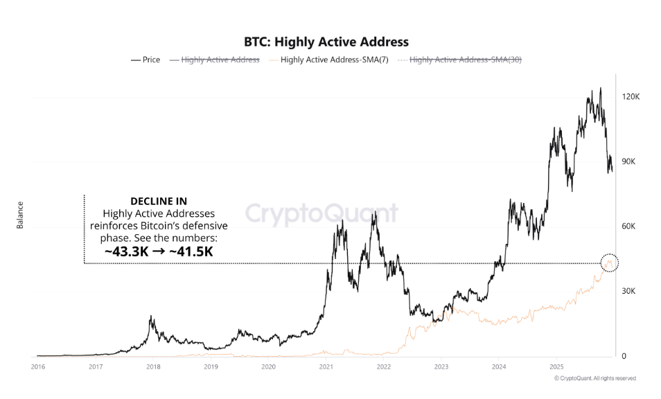 Bitcoin highly active address data (screenshot). Source: CryptoQuant