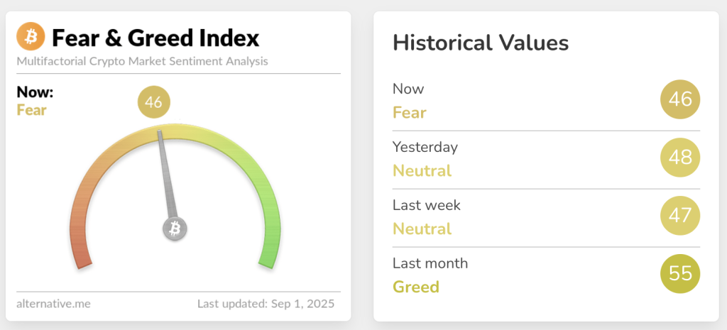 The Crypto Fear & Greed Index, which measures overall crypto market sentiment, slipped into the “fear” zone on Saturday, recovered to “neutral” and then dropped back into “fear” by Monday.
