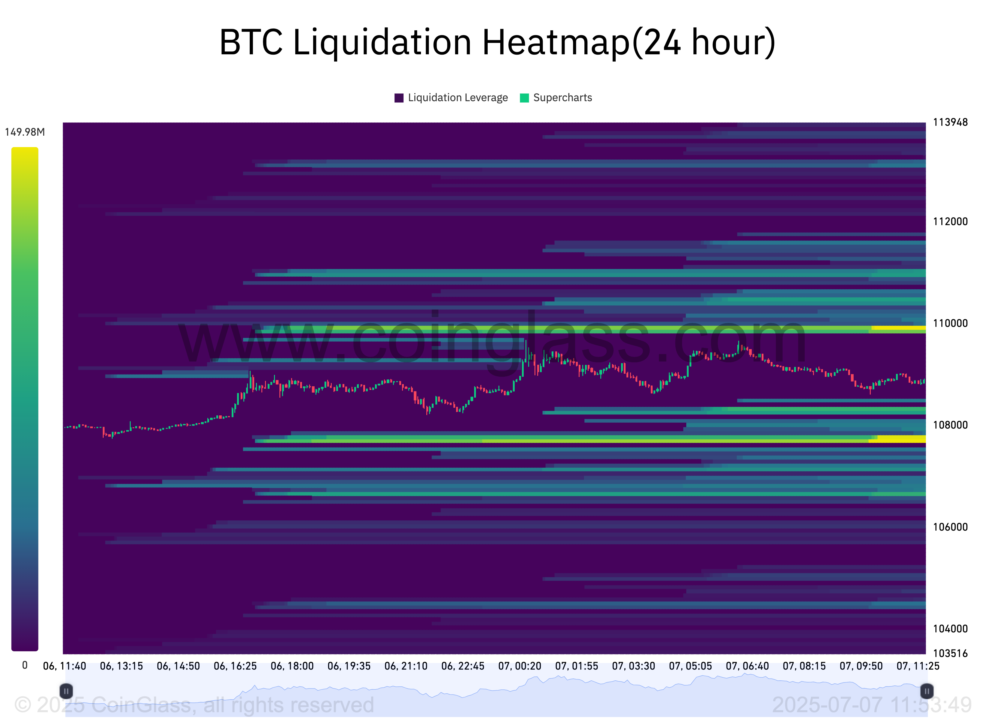 Monitoring resource CoinGlass confirms $110,000 as the key level to break through to the upside, while bid support is lining up at $107,800.