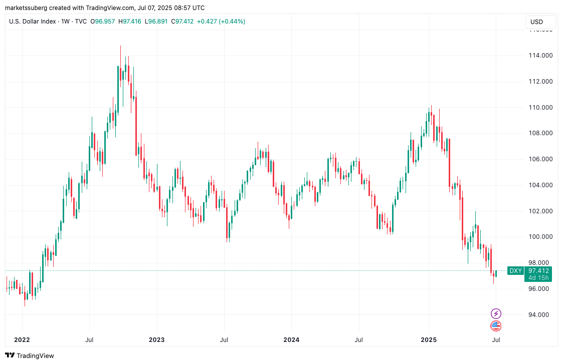 US dollar index (DXY) 1-week chart. Source: Cointelegraph/TradingView