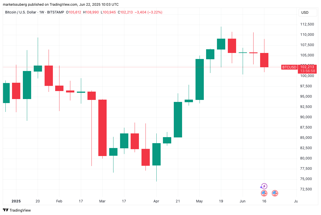 Bitcoin (BTC) risked new month-to-date lows into the June 22 weekly close as geopolitical threats soured crypto sentiment.