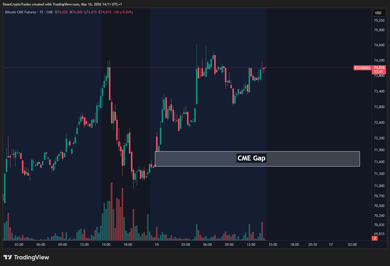 Trader Daan Crypto Trades focused on the latest “gap” in CME Group’s Bitcoin futures created over the weekend near $71,500.