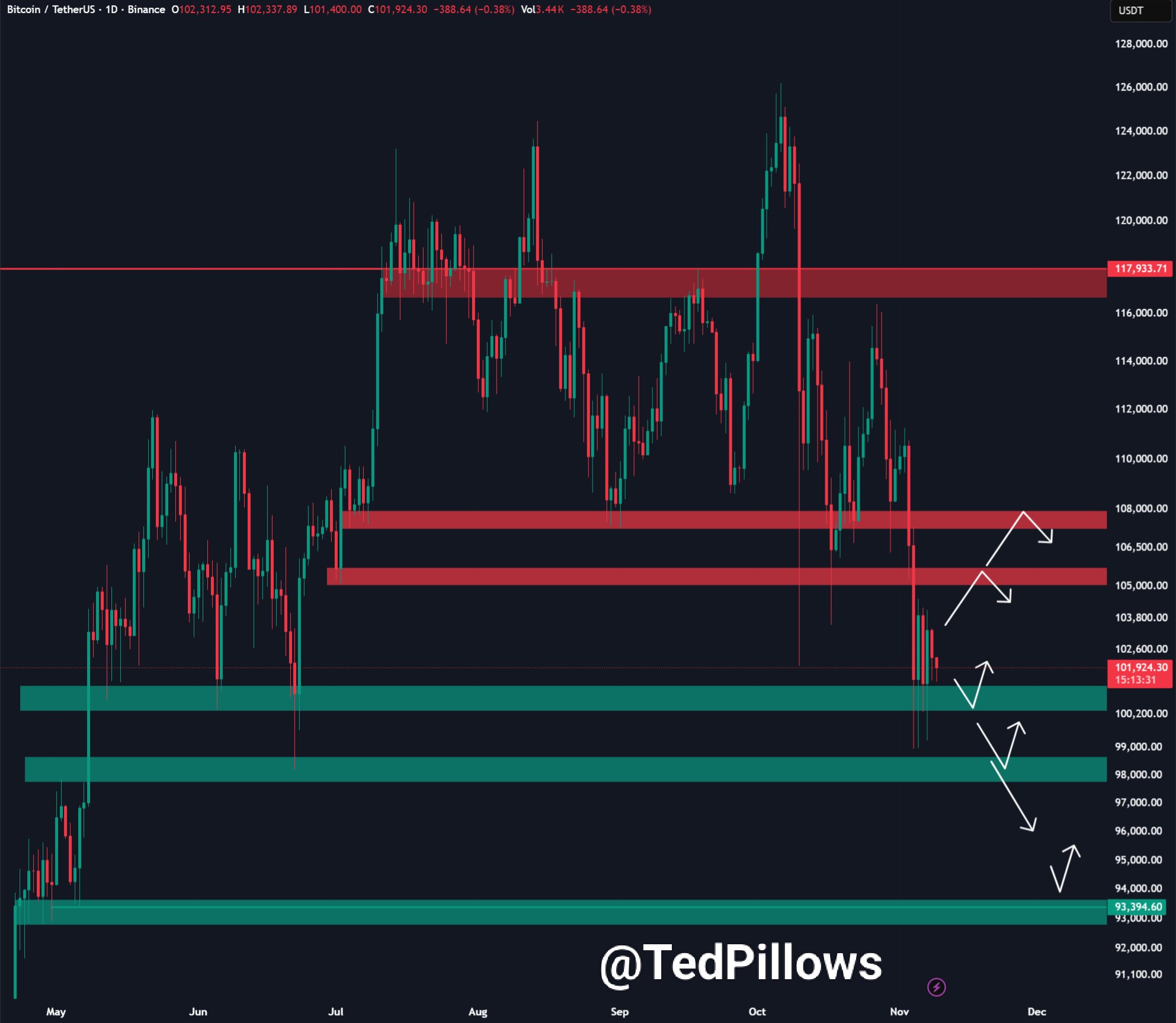 “BTC is still consolidating around the $102,000 level. The markets were expecting the end of the government shutdown this weekend, but it didn’t happen,” he stated.