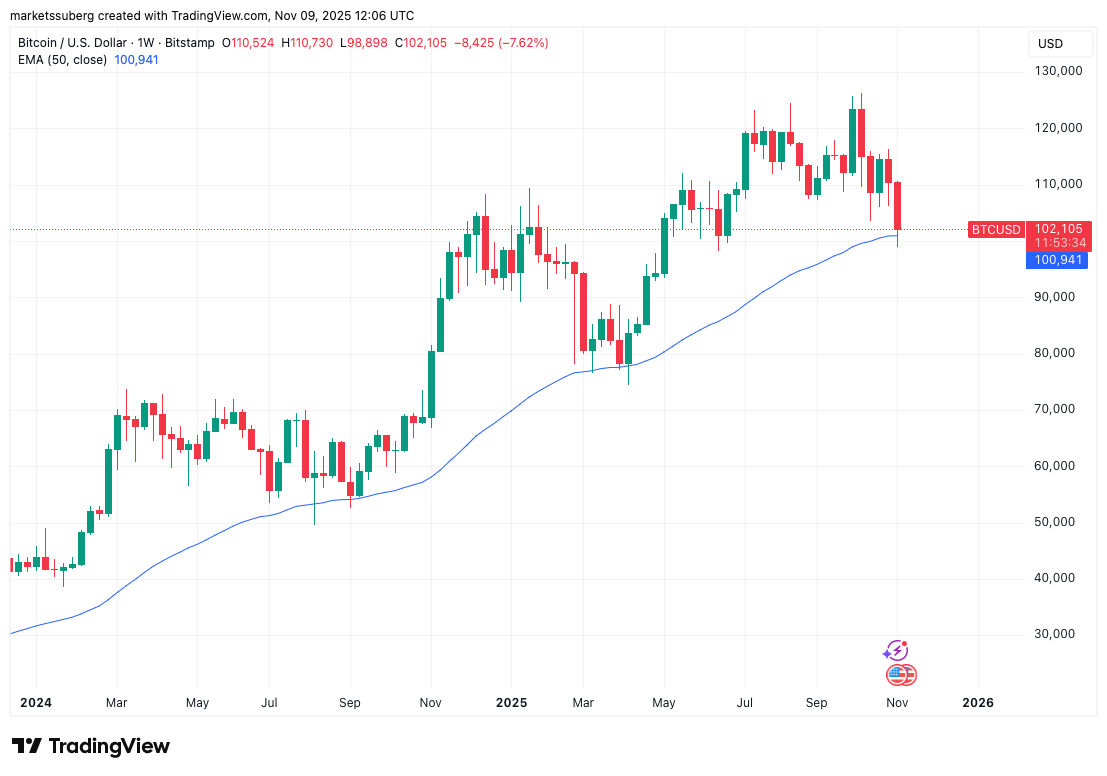 Others eyed a close above the 50-week exponential moving average (EMA), currently at $100,940, as a sign of strength.