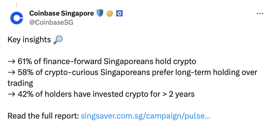 Nearly two-thirds of active retail investors in the country now hold some form of cryptocurrency, according to the survey results. “61% of respondents reported holding crypto during the survey period, indicating that crypto participation has moved beyond niche but is becoming part of retail finance in Singapore,” the survey said.