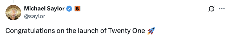 It comes after Twenty One Capital announced its launch on April 23, with the backing of Tether, SoftBank and Cantor Fitzgerald.