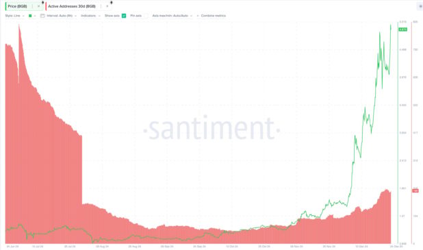 On-chain data shows that the BGB price surge has attracted some Fear of Missing Out as the number of active addresses rose. Its 30-day active addresses rose to almost 200, up from less than 100 in October.
