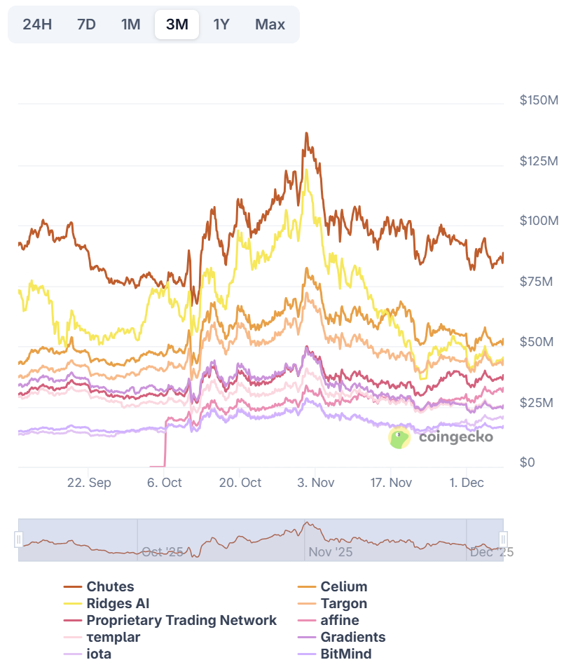 In either case, subnet valuations have grown significantly since launch, according to Grayscale Research. The largest include Chutes, which provides serverless compute for AI models, and Ridges, a subnet focused on crowdsourcing the development of AI agents.