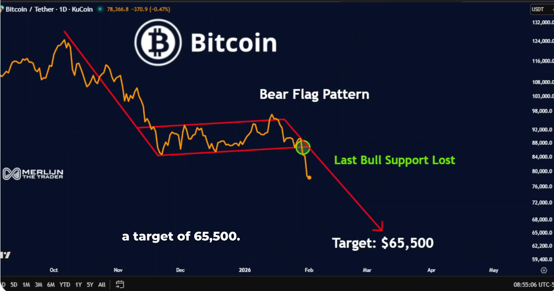 “Bear flag confirmed on Bitcoin,” once the last support at $78,000 failed to hold, said analyst Merlijn Trader in a recent X post, adding: