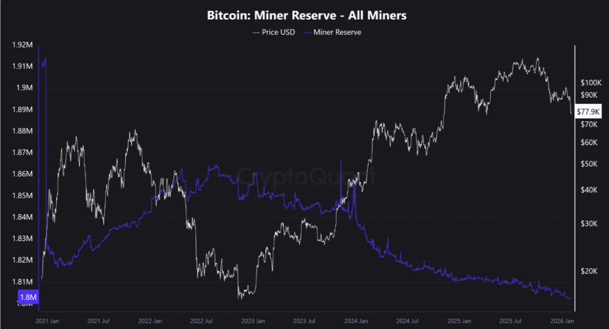 “If price continues to decline, this effect intensifies, increasing pressure to sell miners’ reserves.”