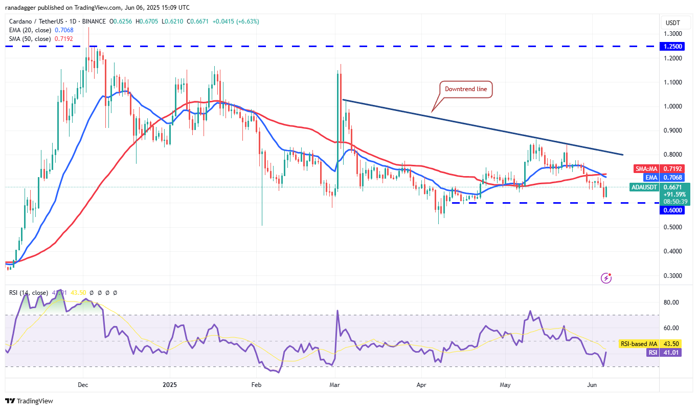 Cardano (ADA) continued its slide and reached near the solid support of $0.60 on June 5, indicating that the bears are in control.
