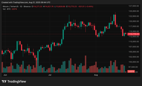 Bitcoin (BTC) price is trading at $113,770 as of press time, continuing its week-long hover around this price level as it struggles to make any decisive move. While the asset is up a minor 0.02% over the past 24 hours, its performance over the past few days has been flat, posting an approximate 8% loss on the week.
