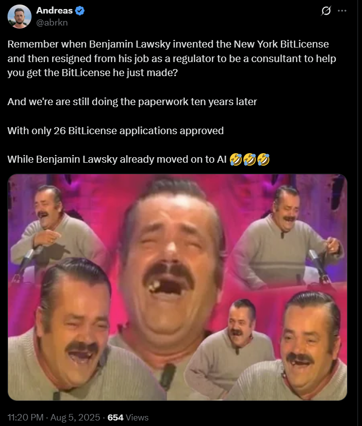 BitLicense is often seen as one of the most challenging regulatory hurdles for crypto companies, requiring a lengthy review process and being granted to only a limited number of companies since its introduction in 2015. It has been criticized by the industry for being too costly and limiting New York State’s competitiveness.