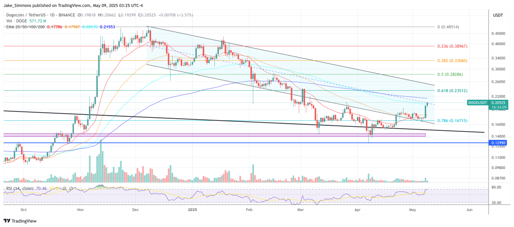 At press time, DOGE traded at $0.205.