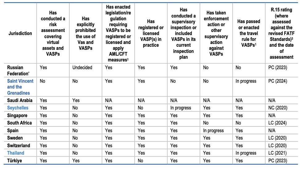 Table of steps taken by all FATF members and jurisdictions with materially important VASP toward implementing R.15. Source: FATF