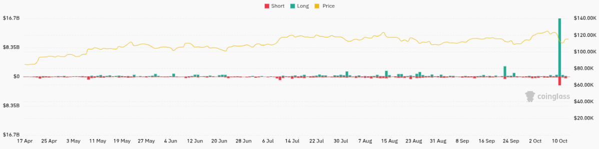 CoinGlass data indicated that on Friday, $16.7 billion of long liquidations and $2.456 billion of short liquidations occurred, making it the biggest liquidation event in crypto history.