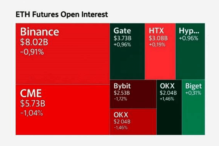 Futures data adds to the cautious tone. Total open interest stands near $37 billion, down 0.62% over the past 24 hours, pointing to reduced exposure from traders. Liquidation data shows more than $100 million in potential long liquidations clustered between $2,880 and $2,910, an area now seen as a key pressure point.