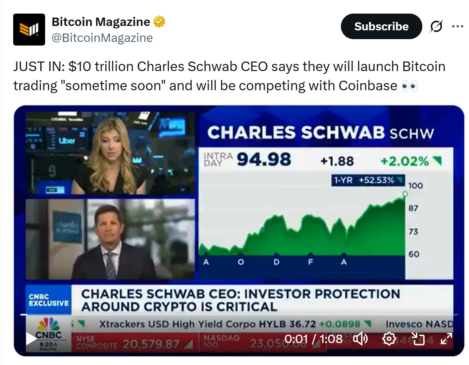 The CEO claimed that many clients currently keep 98% of their wealth with Schwab but hold just 1% to 2% of their crypto assets with digital-native firms. “They really want to bring it back to Schwab because they trust us. They want us to sit alongside their other assets,” he added.
