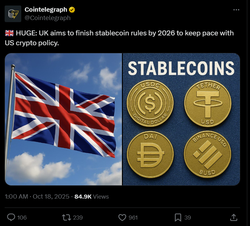 Separately, the UK government has also opened the market for crypto exchange-traded notes (ETNs) to retail investors, signaling a broader national effort to integrate digital assets into mainstream financial markets.