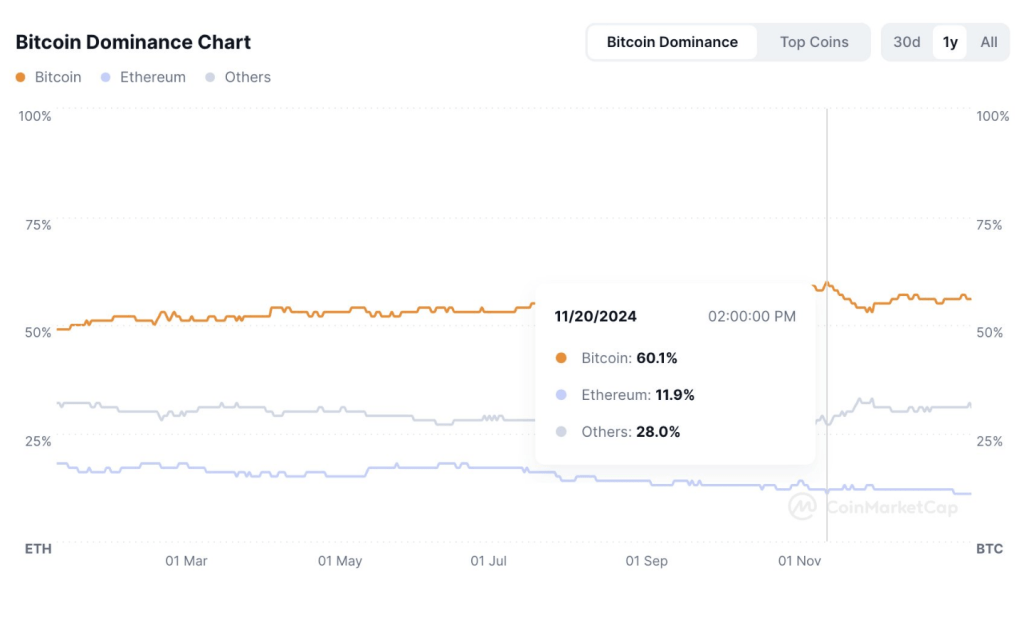 According to Coinbase, the latest surge in altcoins is driven by a slight drop in the dominance of Bitcoin.