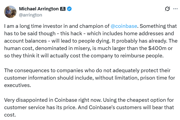 However, the “human cost” of this data breach may be much higher for users, according to Michael Arrington, the founder of TechCrunch and Arrington Capital, who highlighted that the breach included home addresses and account balances, leading to potential physical attacks.