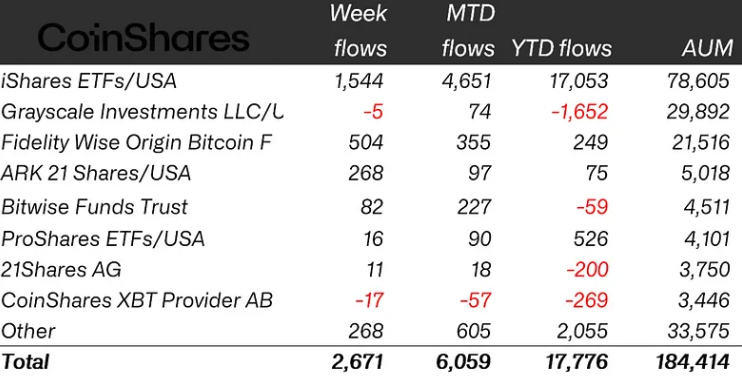 ProShares and Fidelity followed BlackRock with $526 million and $246 million in half-year inflows, while major competitors like Grayscale Investments netted outflows of nearly $1.7 billion.
