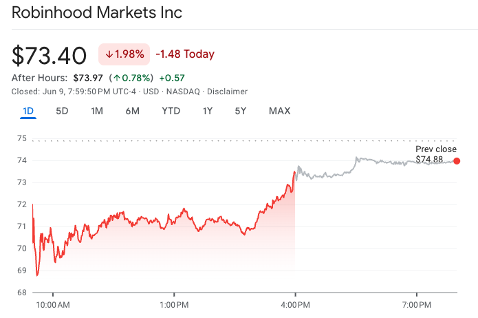 In comparison, rival trading platform eToro Group Ltd. (ETOR), which went public less than a month ago, surged over 10.5% and continued to rise 2.4% after hours to $77.79, while crypto exchange Coinbase Global Inc. (COIN) had a modest 2% gain to $256.63.